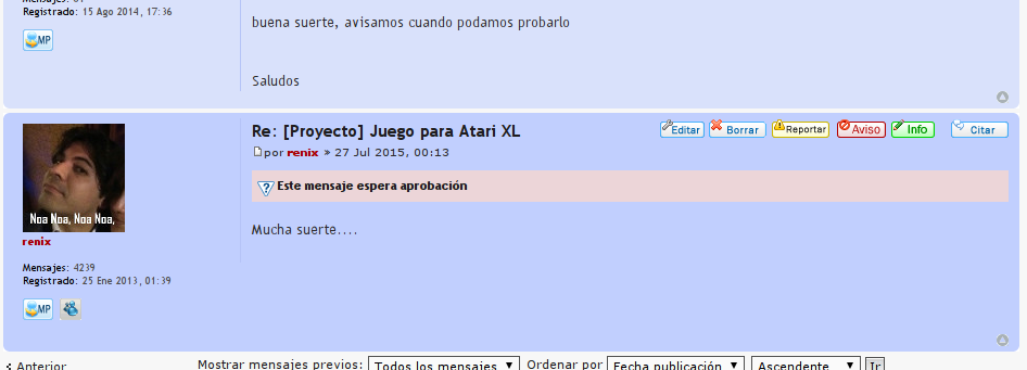 Tuve que darme permisos de moderador... Ahora veo caleta de botones de colores en los postCaReCoiN escribió:Procede tú mismo con la operación 580
