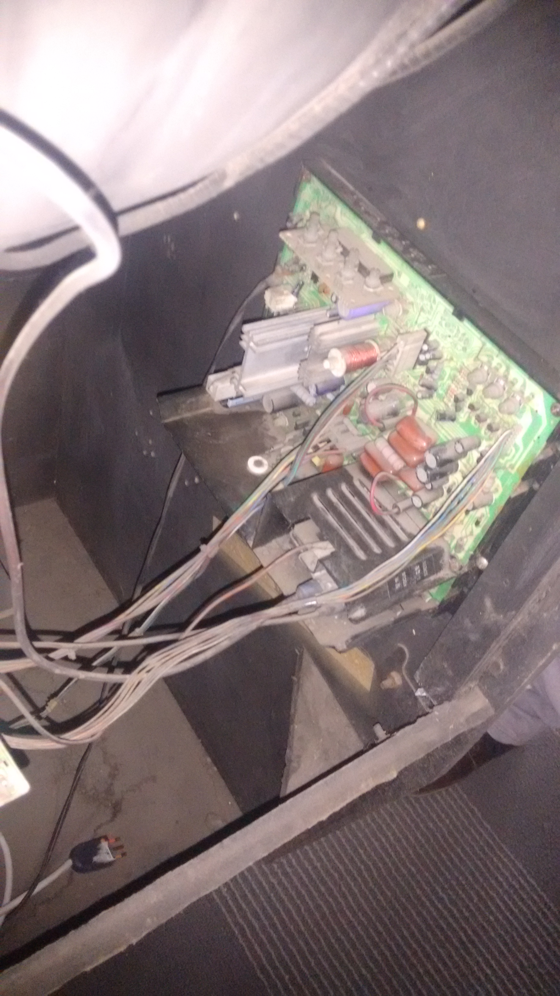 Un pastelito de la pega le pegó en el costado a la maquina, y el monitor empezo a guatear, pero vimos rapidamente que era por que los potenciometros estaban muy sueltos y con soldaduras frias.
