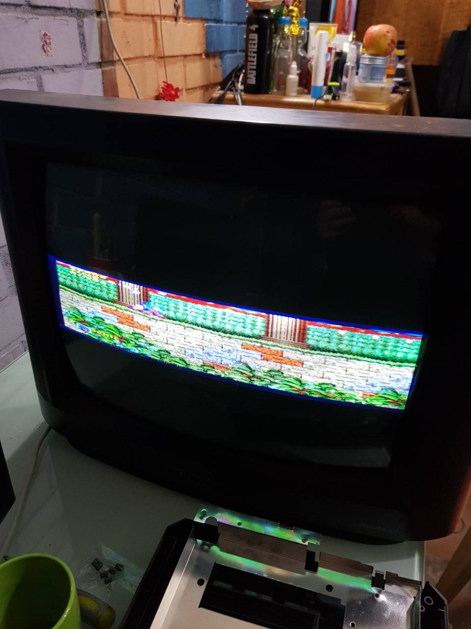 Al hacer esto después de ajustar un rato, lo mejor que pude obtener fue una imagen que con suerte ocupaba la mitad del tamaño. Estuve probando con un genesis por RGB (influirá esto?)