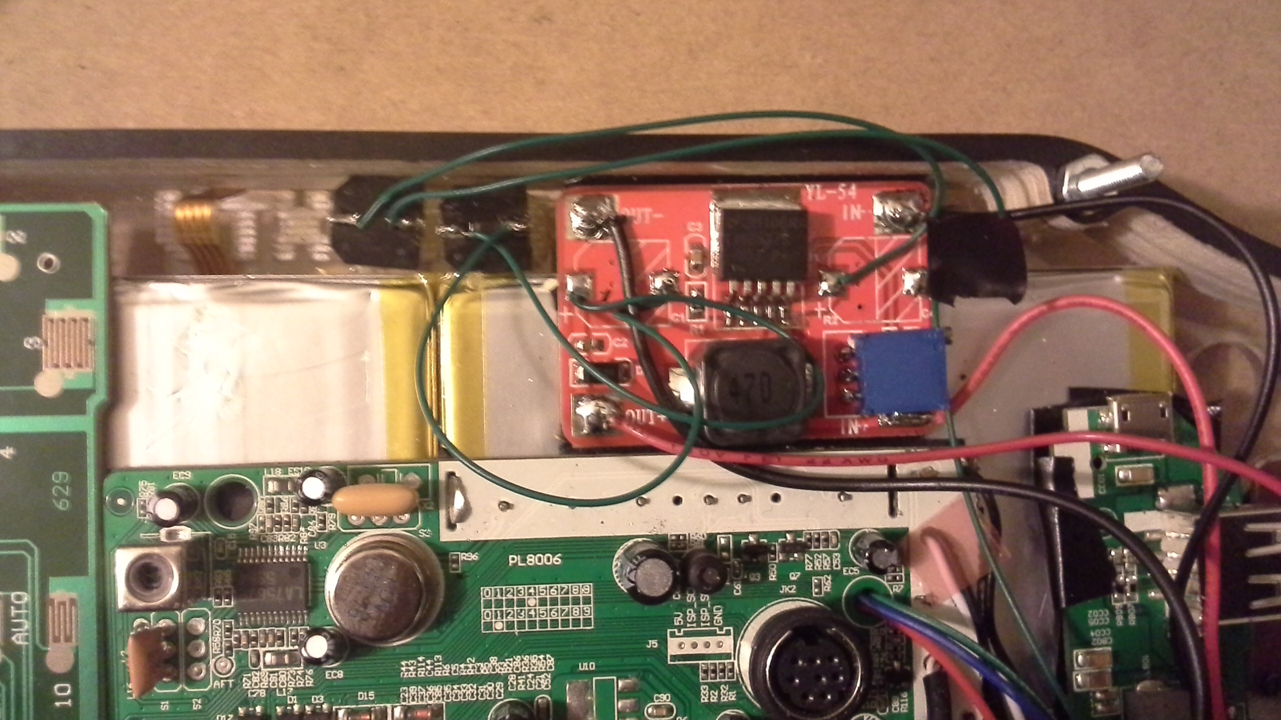 Viendo el tema de las baterias, la bateria cargador de emergencia genius que compre es supuestamente de 10.000 mA pero en su interior tiene un cargador/booster/stepup de 3.7 a 5 VDC, con 4 baterias de 3.7V de 2200mA/h, o sea 8800 mA/h disponibles... Las baterias planas que consegui (6) son de 3.7 VDC de 5.6 W/h, o sea de un poco mas de 1500 mA/h, o sea, pasaditos los 9000 mA/h disponibles, por lo que sospecho que puedo usar el mismo citcuito cargador/booster/step up de las baterias genius para cargarlas todas en paralelo.... en teoria.... vere como se comporta todo.... ya que desconozco la corriente de carga de las baterias q es un dato importante para no hecharlas a perder y/o estropear el cargador del booster/stepup del pack genius....