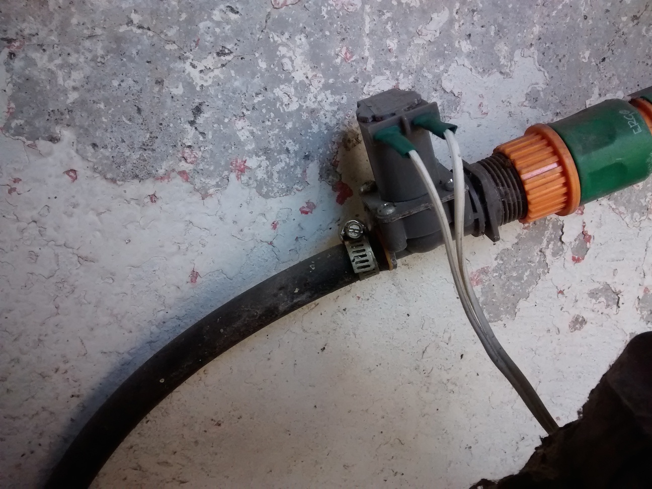Un repuesto de electroválvula de lavadora (las que controlan el paso del agua a la tina de lavado) cuesta alrededor de $1400 y cumple la misma función que las válvulas solenoide para riego, con la diferencia de que funcionan a 220V en lugar de 24V. Yo usé un pedazo de manguera de jardín que tenía de sobra para la conexión de la válvula a la llave de agua, pero si no lo hubiera tenido bien podría haber usado una manguera de lavadora en su lugar y solo me habría costado $1500.