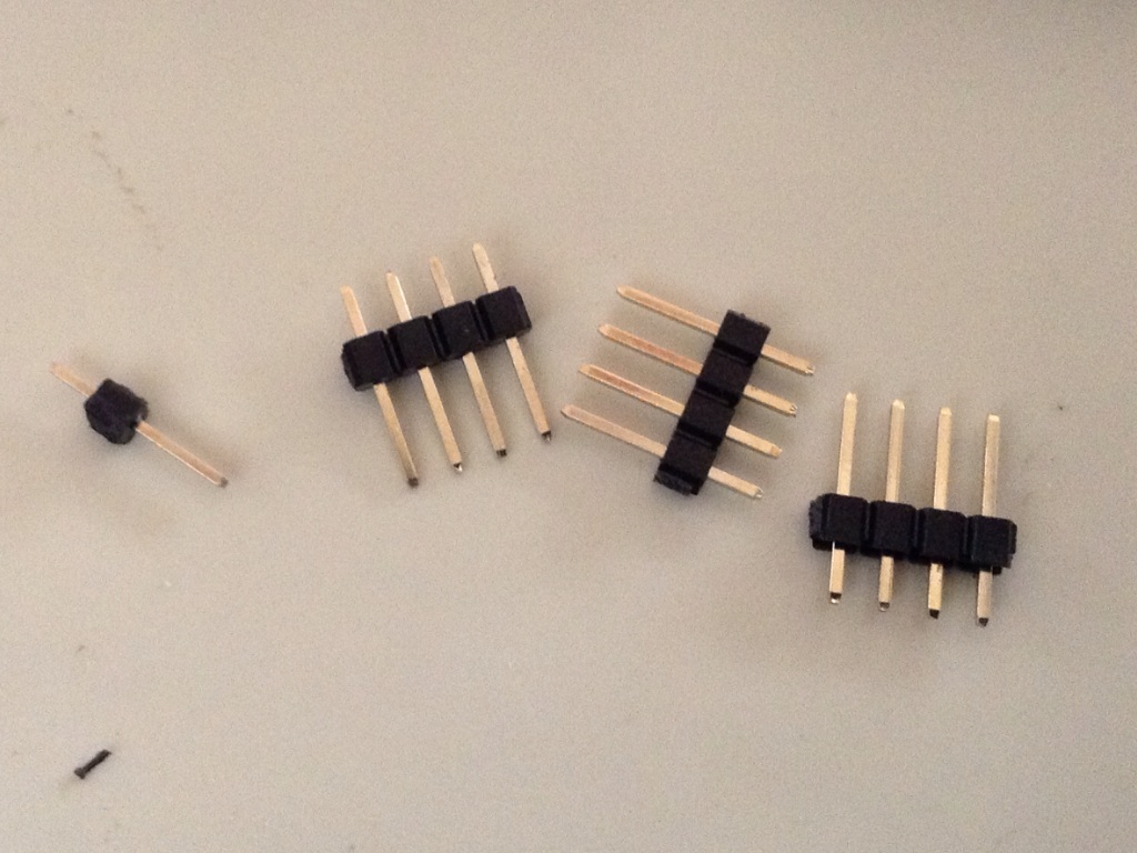 Luego cortamos un pinhead en 3 trozos de 4 pintes y 1 trozo de 1 pin