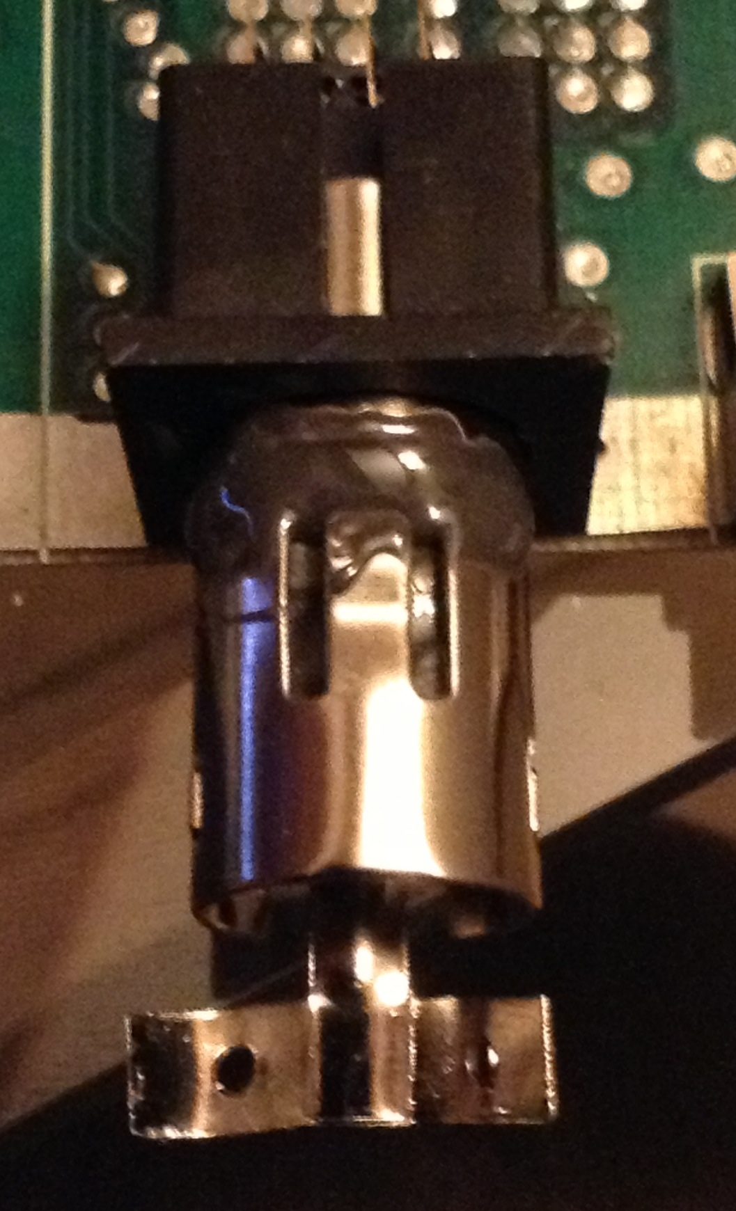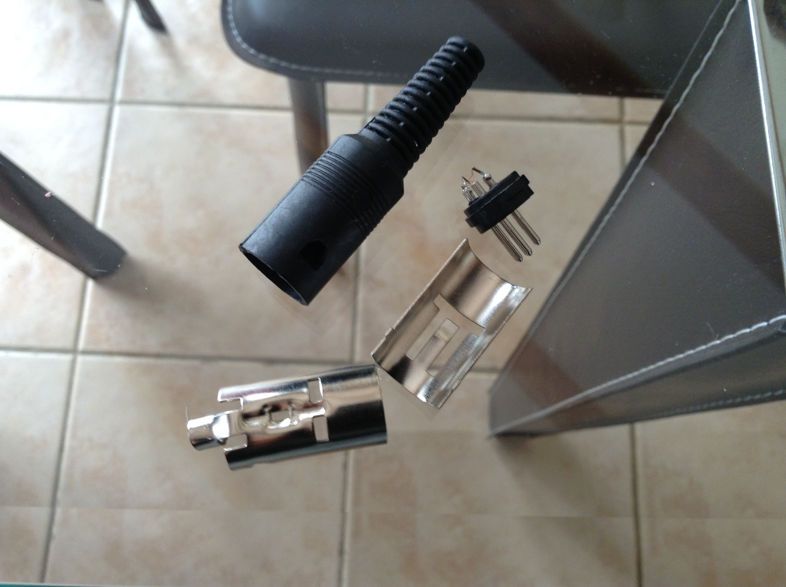 Primero... Desarmamos el ST y ubicamos el conector DIN 13 hembra y le pegamos un pedazo de huincha adhesiva permacel para evitar que escurra dentro del conector hembra el pegamento epoxy que utilizáremos para moldear el conector.