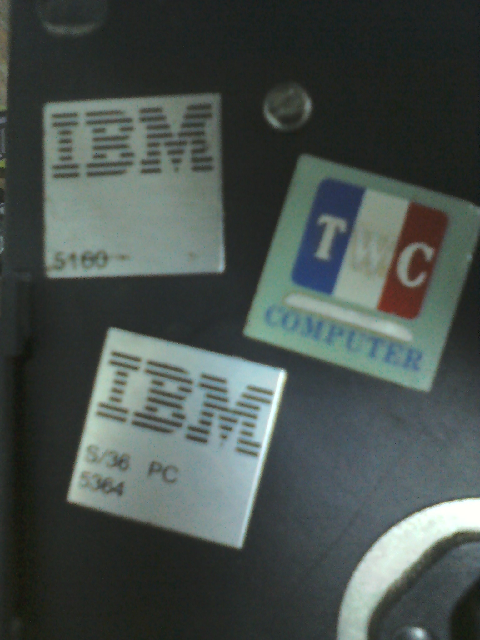 En fin, la foto queda en el spoiler. Es la "TWC" (ni idea que significaba, creo que era algo como "Transworld Computer Corp" o algo asi. Al lado, un par de etiquetas más, una de un S/36 PC y un PCXT 5160, ambas IBM.