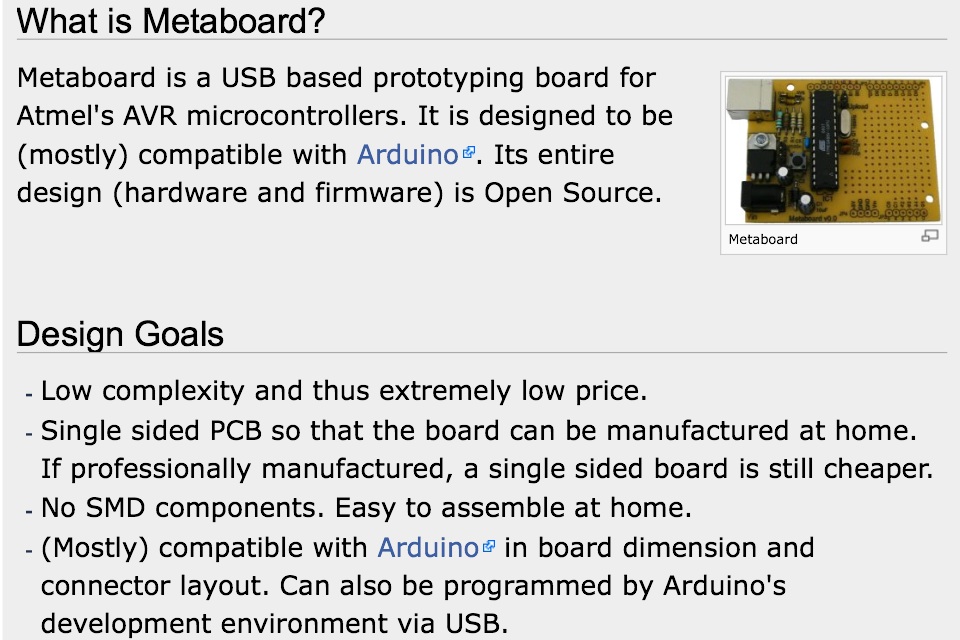 Buscando en Google sobre proyectos compatibles con Arduino y como fanático de los circuitos realizables en casa (pcb de una sola faz principalmente) me encontré con este proyecto... Metaboard..