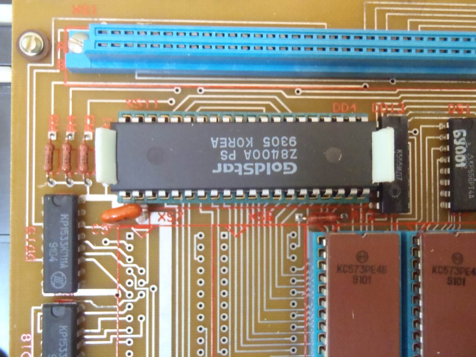 Respecto a tu pregunta, justamente lo abrí porque estaba revisando un Z80 que cachuree por ahí en otro lado que según yo es una copia moderna rusa, y ahí me acordé de éste Spectrum-clon-ucraniano. Lo abrí buscando integrados "exóticos", pero dentro traía un Z80 firmado por los koreanos de Goldstar. Decepcionante. Lo interesante es que trae dos zócalos con chips que asumo son la rom del spectrum y otra más al costado. El hecho que vengan en sockets me da para pensar que hablamos de componentes que se podían cambiar (es decir, otra rom con otra variación de lenguaje o alguna gracia como un compilador, que se yo).