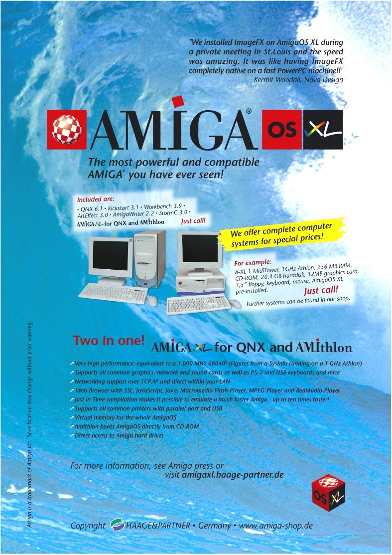 A continuación un afiche promocional de AmigaOS XL / Amithlon de esos que veíamos en las revistas de tecnología de la epoca, que me llena de nostalgia...