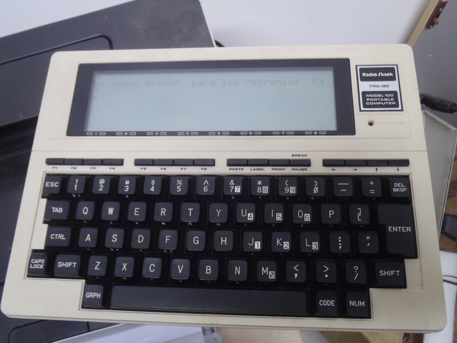 - un TRS-80 modelo 100, funcionando