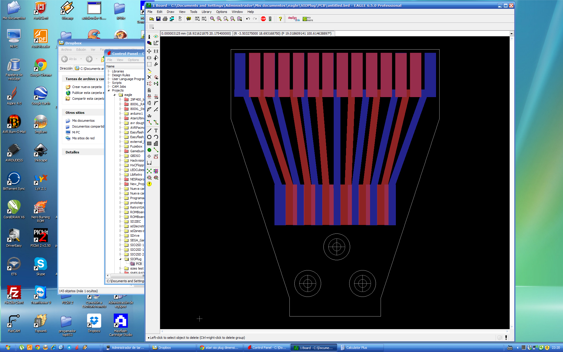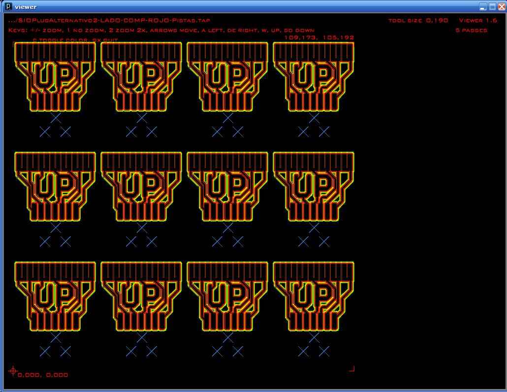 Llegué a una versión estable del SDRIVE en pcb de doble faz... y descrubrí como hacer agregaciones de un mismo pcb a la vez en Eagle... y así fresar o mandar a fabricar varias placas de una sola vez... como si de un proceso en serie se tratase... Para ello hay que cerrar el editor de circuitos esquemáticos para que el editor del pcb te permita copiar pegar el diseño de la placa... (sino se cierra el otro editor te arroja un cuek :) ). Esto genera una inconsistencia entre esquemático y pcb (al haber elementos de pcb sin hermano en el editor de esquemáticos)... pero antes, grabas todo con otro nombre para no alterar el diseño estable y con coherencia, y procedes como indico...